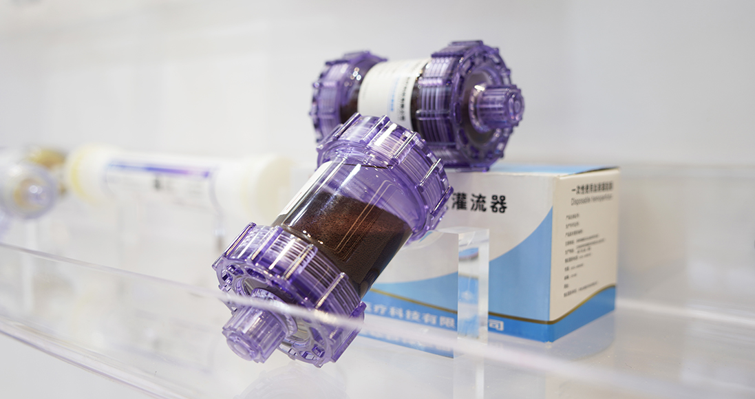 此外,本次大会展出了科技部“科技助力经济2020"重点专项产品——血液灌流器,与血液透析器串联为组合型人工肾(HD+HP)治疗模式,达到高效清除终未期肾病患者体内以硫酸吲哚酚和硫酸对甲酚为代表的蛋白结合毒素物质的效果,可改善并治疗长期并发症,延长生存周期。