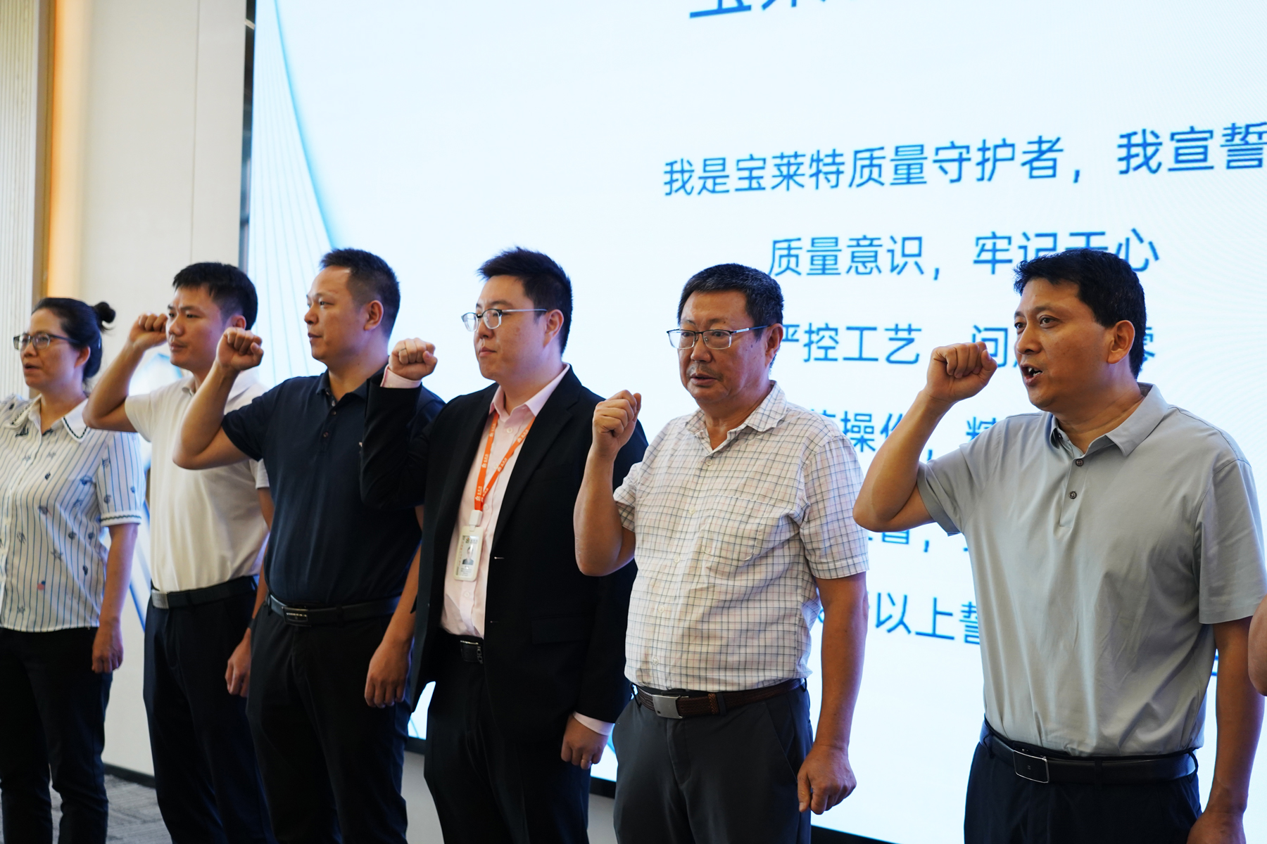 在董事长掷地有声的号召后,大会迎来了激动人心的全员质量誓言宣读环节。全体与会人员肃立,在领誓人的带领下,以铿锵有力的声音庄严承诺恪守质量准则、履行质量责任,将“质量即生命”的信条内化于心、外化于行,现场气氛庄严肃穆,彰显了乐鱼(中国)人捍卫质量的坚定决心。这份誓言不仅响彻会场,更将成为整个质量月乃至未来工作中的行动指南。