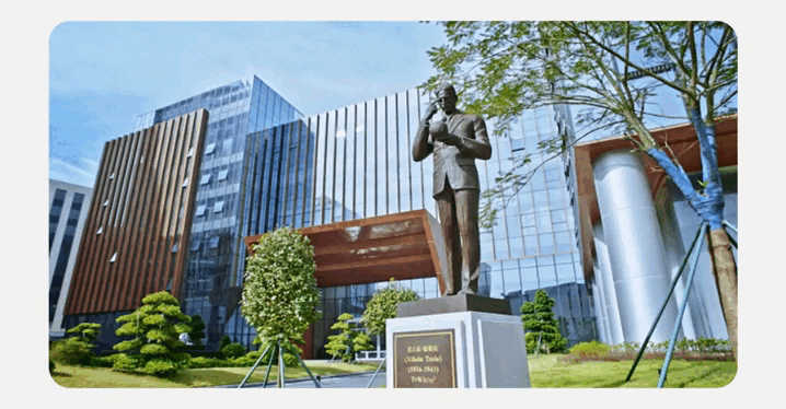 乐鱼(中国)园区内伫立着尼古拉·特斯拉雕像